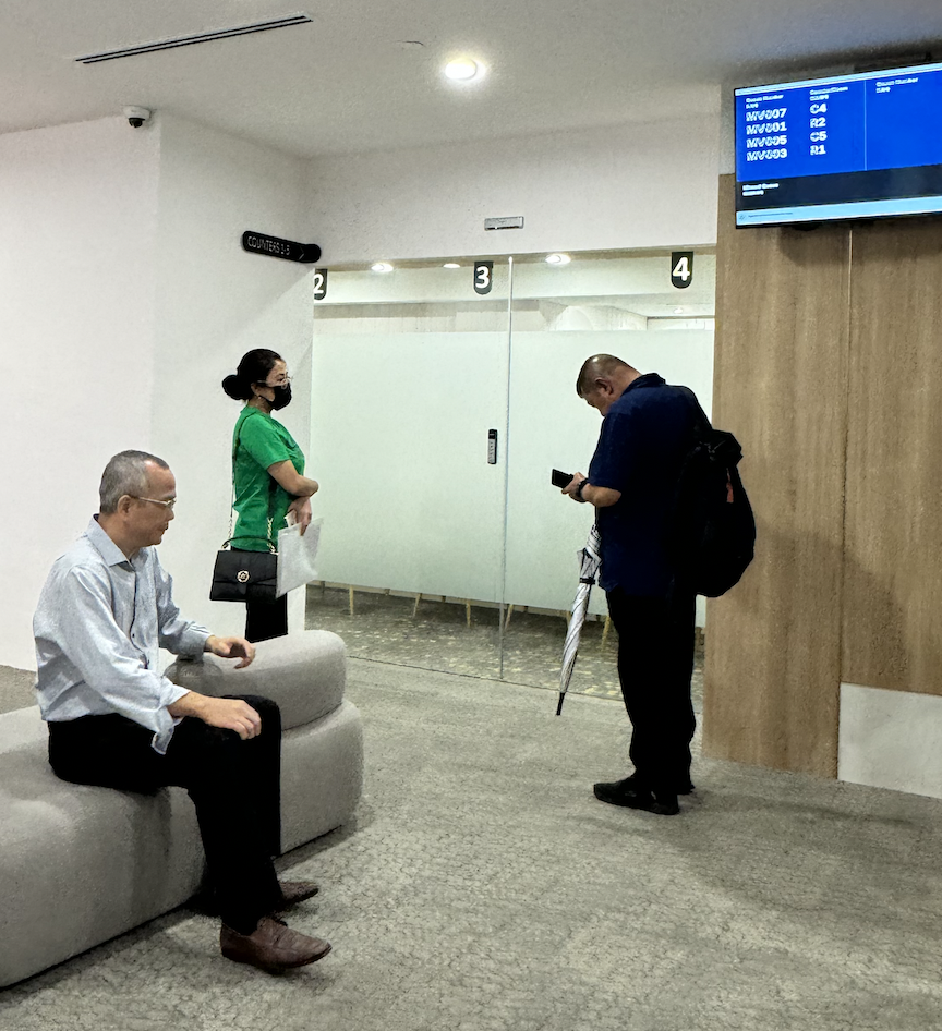 Wait in the designated area to be called to the counters. The counters handle both ROM and ROMM cases. Look at the screen and wait for your number to be called. If you pop over to the nearby café just in front, keep an eye on your SMS notifications. The toilet is just round the corner from where all the newlyweds take photos with the flower/greenery background, and there is a water cooler available as well.
